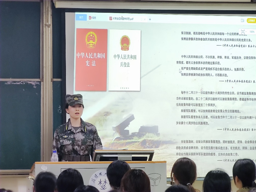 2022522,太阳集团网tyc9728开展2022年春季征兵动员。2021级全体学生参加此次动员会。会上太阳集团网tyc9728四名退伍学生杨云飞、朱毅忠、马诗怡、徐建超分别就征兵优惠政策、入伍条件、男兵和女兵的征兵流程等方面做了细致的讲解。