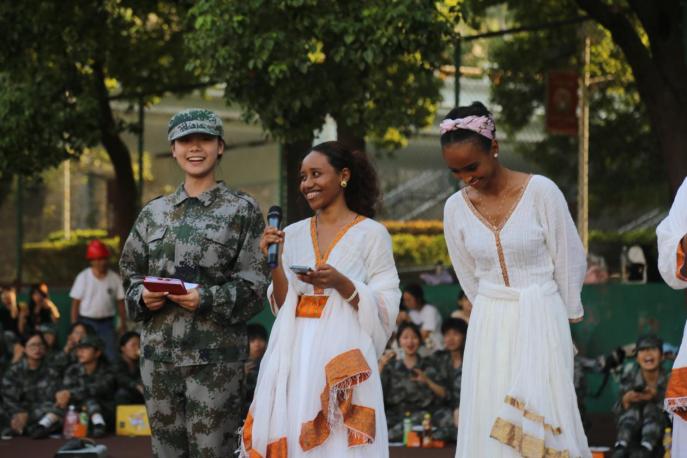 活动现场精彩纷呈,同学们才艺尽显。诗词朗诵深情款款,字字珠玑,展现了文学的魅力;歌舞表演活力四射,身着军训服的他们以曼妙的舞姿和动人的歌声,赢得了阵阵掌声;架子鼓表演激情澎湃,展现了青春的力量与激情;古筝弹奏悠扬婉转,古典韵味与现代气息交相辉映。此外,活动还邀请了国际教育学院学生,他们流利的中文诗朗诵和独具异域风情的歌舞表演,为活动增添了国际化的色彩,促进了中外文化的交流与融合。
