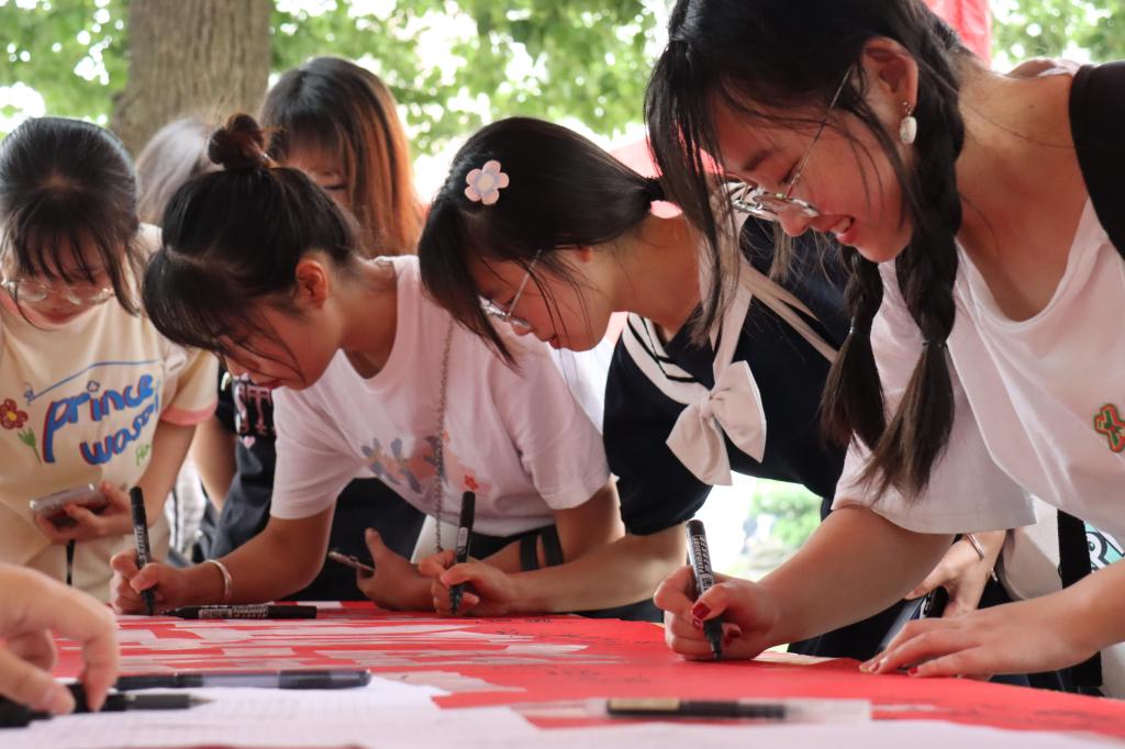 活动中,志愿者们热情细心接待每一位前来参加活动的同学。大家脸上洋溢着幸福的笑容,怀揣着对美好未来的憧憬,将心中的祝愿化作文字书写在鲜艳的横幅上,包含着学弟学妹对即将毕业的学长学姐们送去美好的祝愿,也有自己对未来的期望。时光总是不停地推着我们向前奔跑,青春的旅程总是在一天天地变少,期待在以后的人生路再次相遇。