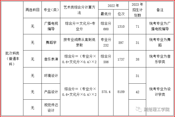 (1)设计学类、音乐表演专业按“(专业成绩×60%+文化课成绩×40%)×2”计综合总分,从高分到低分录取。