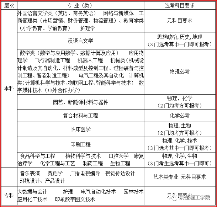 太阳集团官网tyc9728新高考“3+1+2”模式专业选考科目要求