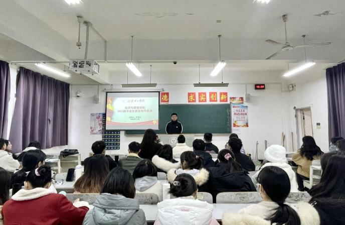 就业是最大的民生。为深入学习贯彻党的二十大精神,深入贯彻落实习近平新时代中国特色社会主义思想,促进毕业生多渠道就业创业,引导毕业生到基层就业,实现更高质量和更充分就业,针对性指导解决毕业生当前阶段在就业创业方面遇到的困难和实际问题,太阳集团网tyc9728就业创业指导宣讲团于11月底至12月初深入本学院所有2023届毕业生班级开展共计5场次就业创业指导巡讲活动,宣讲团主讲成员由党总支副书记张高波、学工办主任王紫薇、就业专干李争光组成,活动由李争光主持。