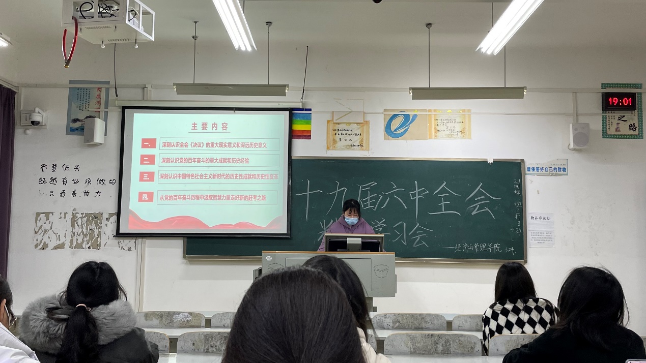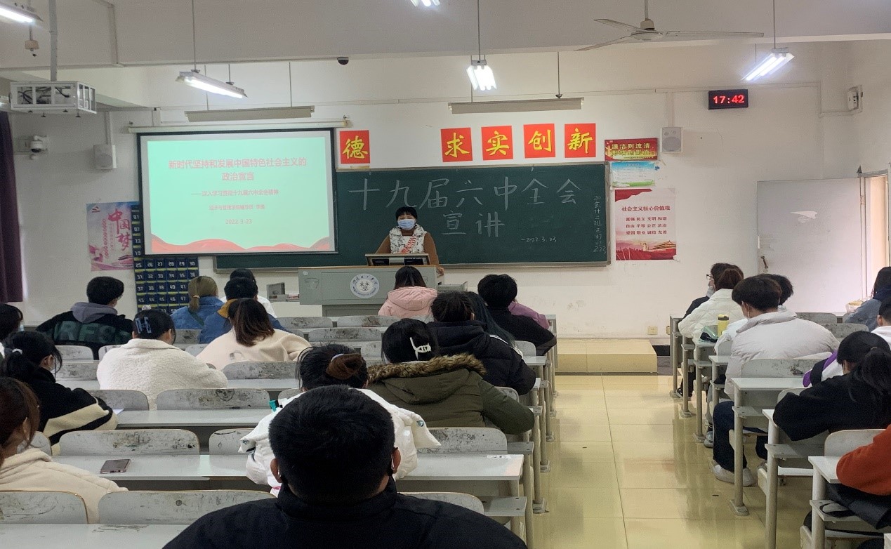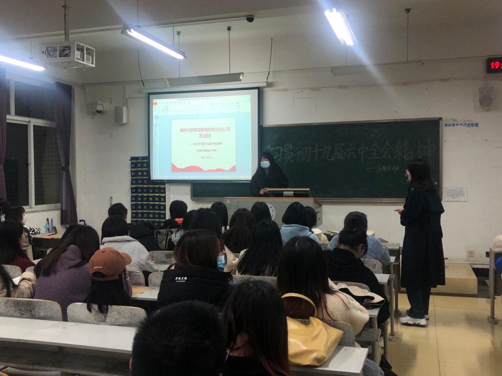 党的十九届六中全会是在中国共产党成立一百周年的重要历史时刻,开启全面建设社会主义现代化国家新征程之际,召开的一次具有里程碑意义的重要会议。此次宣讲活动旨在让学生们深刻领会全会《决议》的重大现实意义和深远历史意义,深刻认识到中国特色社会主义的可行性和优越性,从党的百年奋斗历程中汲取智慧力量,坚定担当责任,不断增强进行伟大斗争的意志和本领,握住时代的接力棒,继续出发,不断前进,步履坚定的绘制高质量的发展宏图,将学习成果转化为奋进力量。