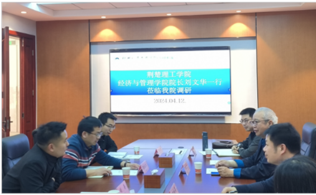 4月12日上午,太阳集团网tyc9728院长刘文华带队赴湖北汽车工业学院调研交流,教研办郭金勇主任、数字经济专业负责人江丽主任、王坤博士随同调研。湖北汽车工业学院经济管理学院院长殷旅江、分党委书记王礼华、副院长胡姜、数字经济系副主任程文明以及数字经济系专任教师潘卫华副教授、代将来博士、王梦真博士参加会议。会议由副院长胡姜主持。